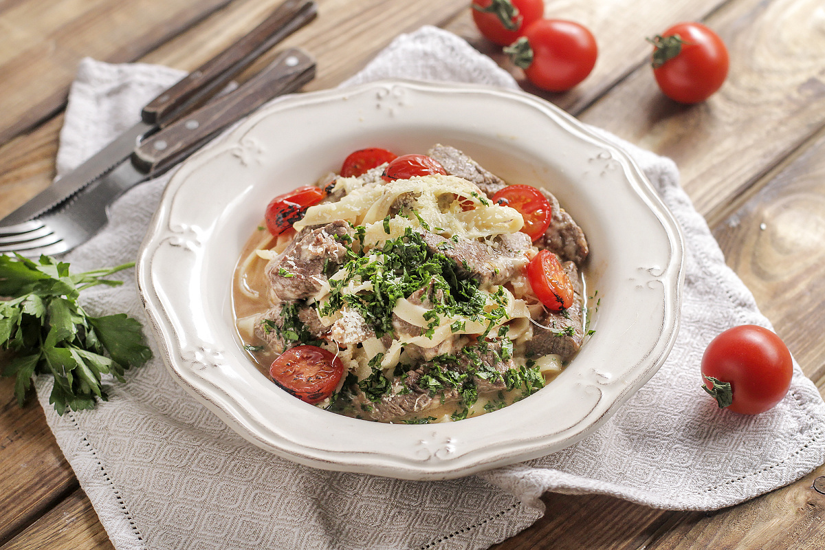 Отдаясь воспоминаниям о кухне Италии, невозможно не упомянуть о тальятелле, одном из самых любимых видов пасты. Сочетание нежной говядины и сочных помидоров черри делает это блюдо настоящим кулинарным хитом. Этот рецепт, известный как «Тальятелле Папы Карло», идеально подходит для быстрого ужина, который порадует как близких, так и гостей.