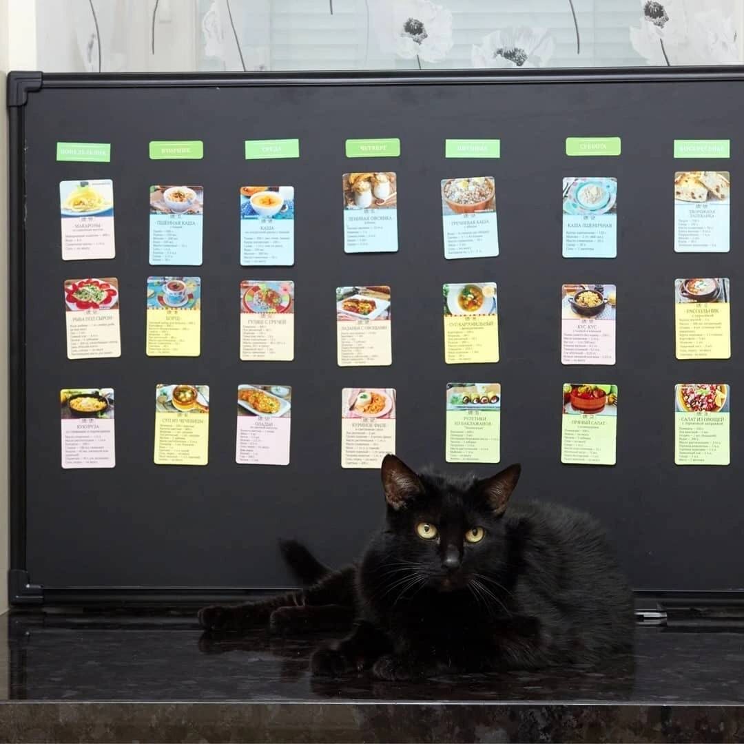- Быстрое планирование меню: За десять минут можно выбрать блюда на всю неделю. Карточки с рецептами удобно развешиваются на холодильнике, что позволяет быстро ориентироваться в предстоящих трапезах.