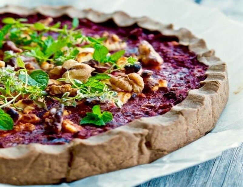 Открытый пирог с начинкой из сладковатой свеклы, нежного сыра и орехов станет отличным дополнением как к утреннему кофе, так и к вечернему ужину. Тесто, сделанное на основе кипятка и оливкового масла, получается удивительно рассыпчатым и легким.
