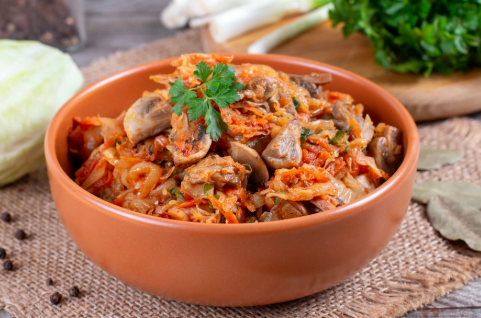 1. Тушёная капуста с грибами (30–35 минут)