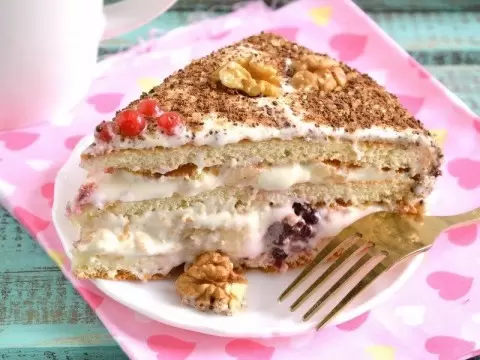 5. Тортик из магазинных бисквитных коржей с бананом и ягодами