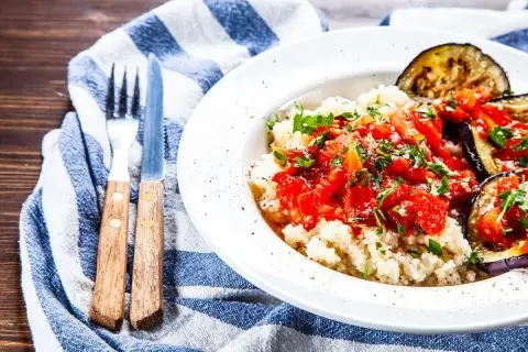 Исследуйте мир необычных вкусов с кускусом, дополненным баклажаном, цукини и перцем чили. Это блюдо не только питательное, но и радует глаз своими яркими цветами и ароматами.