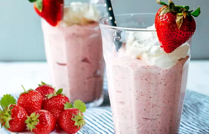 Из данного количества ингредиентов получается 2-3 стакана насыщенного молочного коктейля с клубникой, который приятно удивит всех!