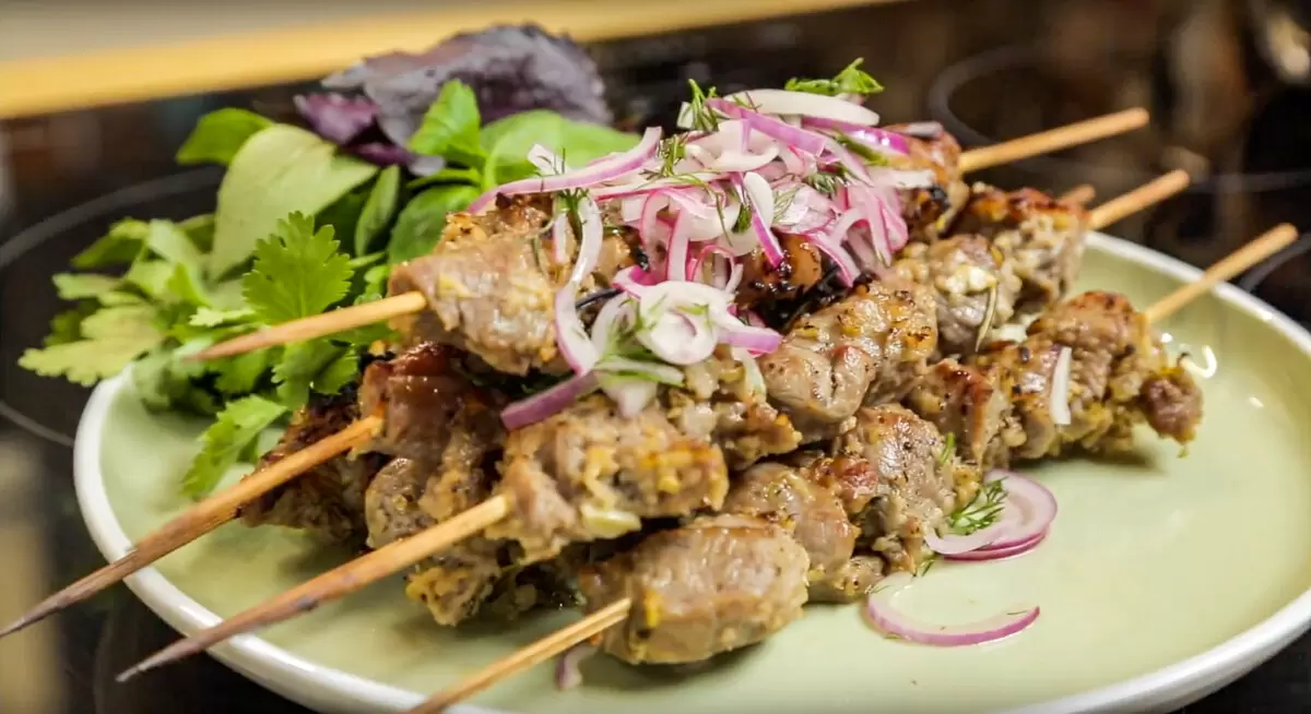 Ваш ароматный и аппетитный шашлык готов! Приятного аппетита!