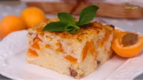 После этого важно, чтобы рисовая каша получилась густой и хорошо разваренной. В кашу добавляются кусочек сливочного масла и предварительно замоченный изюм. Также добавляются очищенные и нарезанные на кусочки абрикосы, которые придадут запеканке свежий летний вкус и аромат.