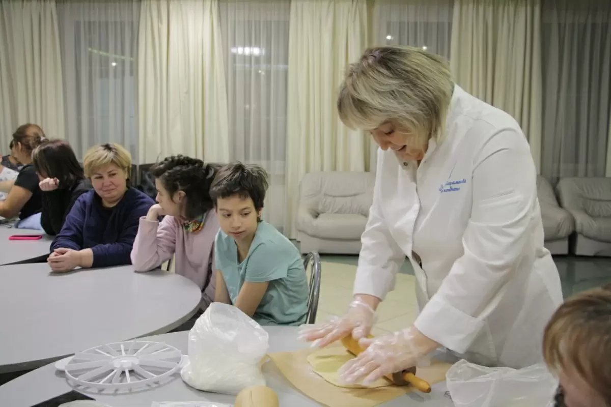 В рамках мастер-класса по выпечке собрались мамы и дети, пациенты центра — место было уютное, а задача понятная: сделать рогалики с начинкой и заметить, как уверенно растет настроение от каждого удачного штриха.