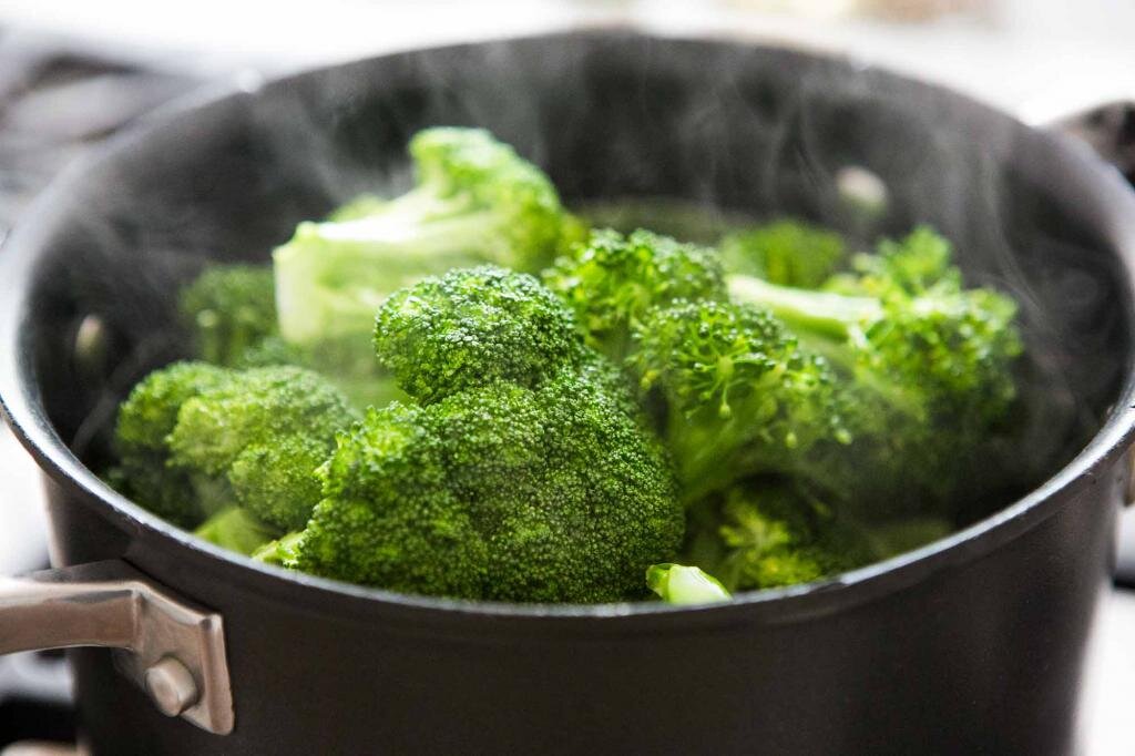 Тем временем брокколи следует отварить в подсоленной воде до мягкости. Часть черешков оставьте для украшения. Остальную капусту можно протереть через сито или взбить блендером для получения однородной консистенции. Предварительно просушите муку на сковороде и смешайте с тщательно разведенными сливками. Проварите массу до загустения.