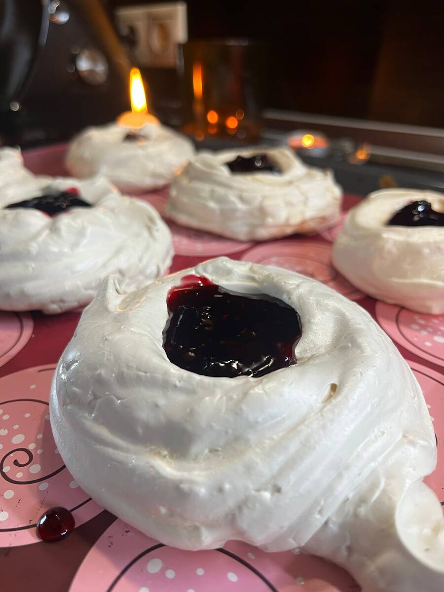 4. Формирование безе: Противень застелить силиконовым ковриком. Ложкой выложить массу, придавая форму. Сделать небольшие углубления в центре для возможной начинки, будь то крем или свежие ягоды.