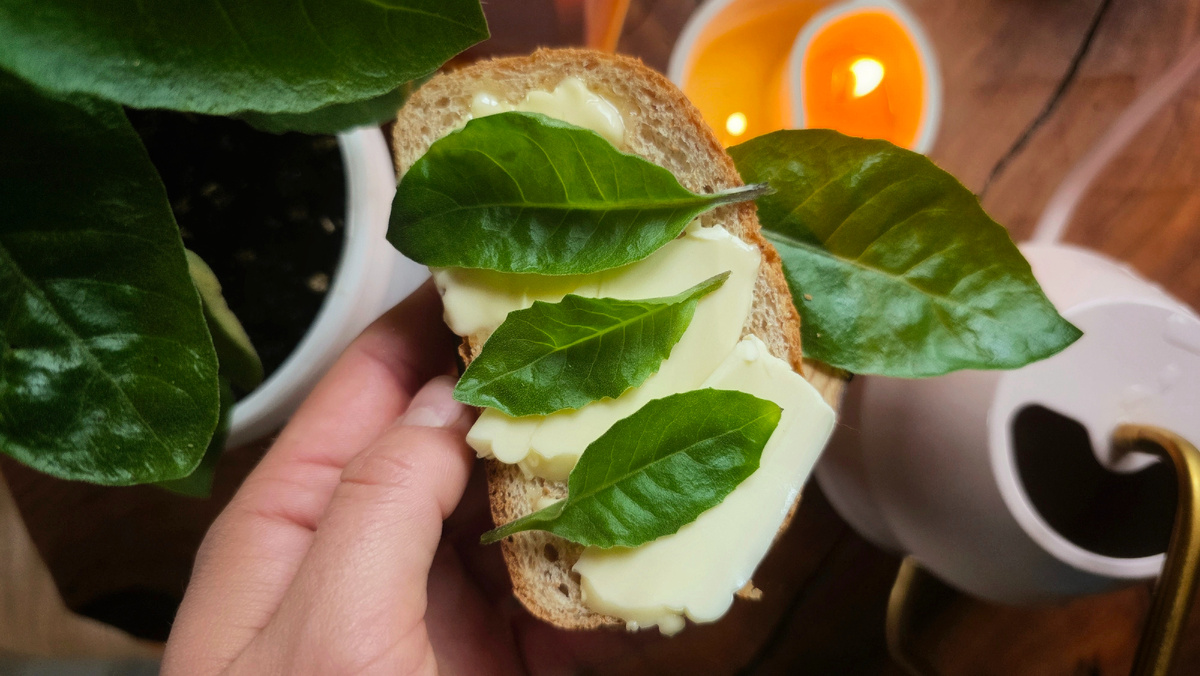 Листья джинуры схожи с листьями шпината, их вкус нейтрален, без горечи и кислоты, что делает их отличным дополнением к салатам и бутербродам. Это растение не требует особого ухода, что делает его идеальным кандидатом для городских огородов.