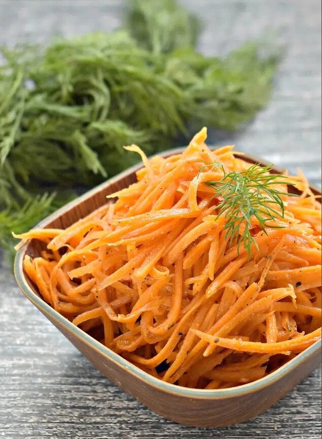 Первым делом нужно тщательно подготовить морковь: промыть, очистить и натереть на специальной тёрке для корейской моркови. Этот шаг является ключевым для создания характерной текстуры блюда.
