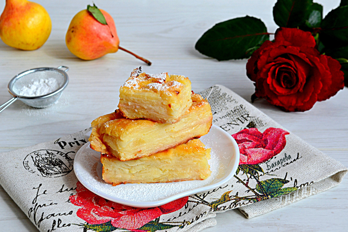 Этот пирог получается необычайно влажным и вкусным, с ощущением, будто груши пропитаны заварным кремом. Приятного аппетита!