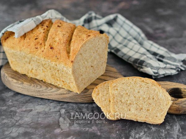После окончательного вымешивания поместите тесто в смазанную маслом форму и дайте полежать под влажным полотенцем в течение 1 часа. Делаете несколько надрезов на поверхности и ставите в разогретую до 180 °C духовку на 45 минут. Готовность можно проверить, постучав по корочке — если звук глухой, хлеб готов.