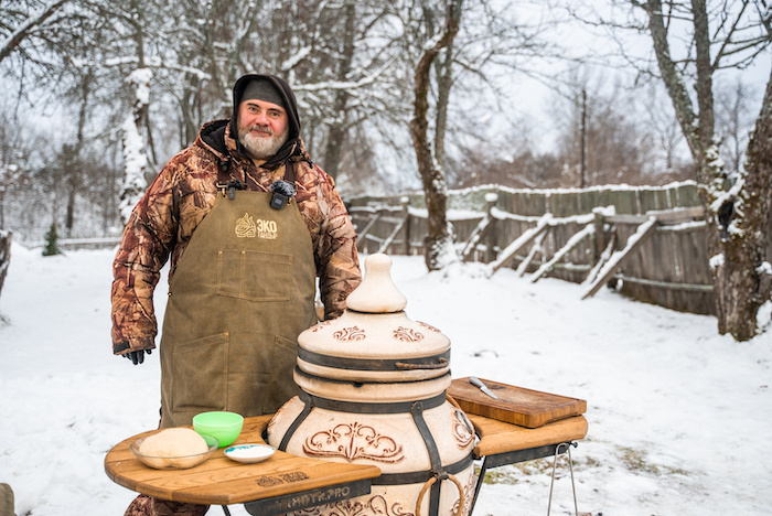 Шаг 3: Оптимальная температура для выпечки – 250°С. Для того чтобы прикрепить лепешку к стенке тандыра, рекомендуется использовать специальные рукавицы с подушкой от компании ЭкоТандыр. Лепешку слегка сбрызнуть водой и крепко прижать к стенке.