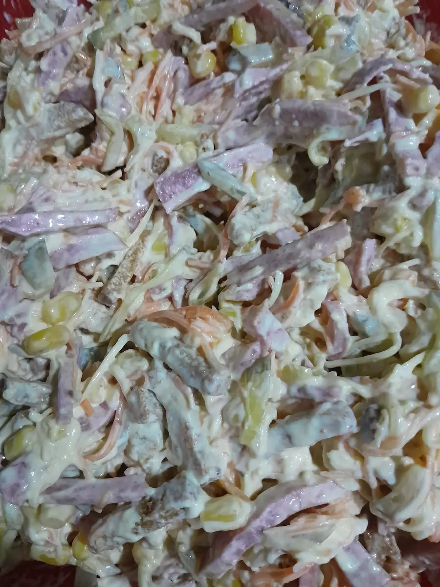 - Майонез — для заправки (около 3-4 столовых ложек).