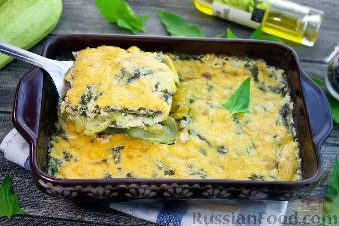 - Запеканка из кабачков со шпинатом. Это лёгкое и вкусное блюдо готовится без муки, а гармония кабачков и шпината подчеркивается сливками и сыром.