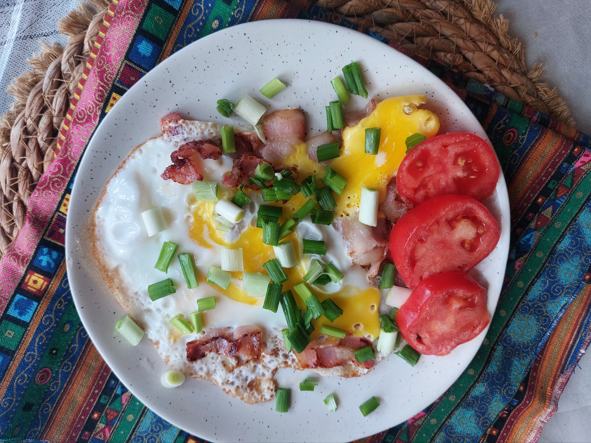 Утро началось с приятного сюрприза — куры, наконец-то, начали нести яйца. Завтрак стал настоящим ритуалом: яичница с беконом и помидорами с собственного огорода, где даже в середине декабря продолжают дозревать плоды сорта «Де Барао». Это действительно поднимает настроение и задает нужный старт на весь день.